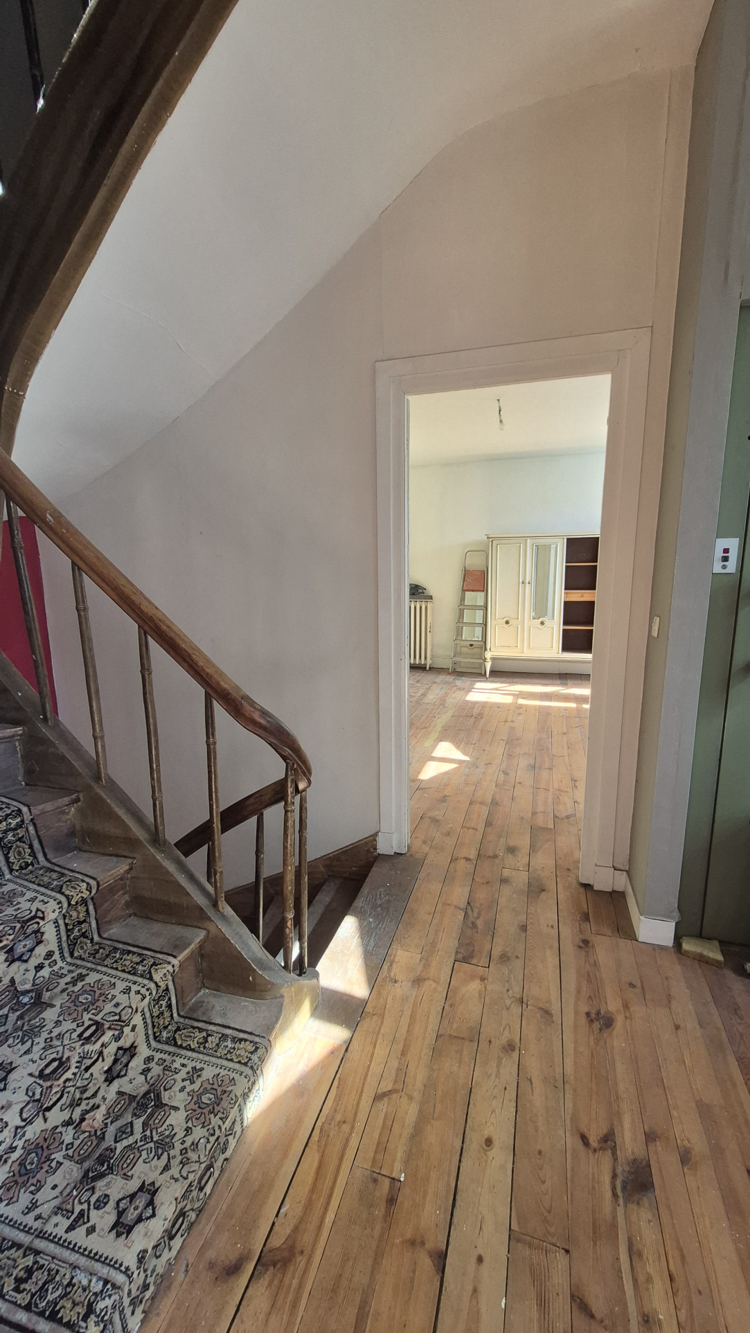 La première maison, construite dans les années 1930, offre de beaux volumes et beaucoup de cachet : parquets bois, cheminées..
