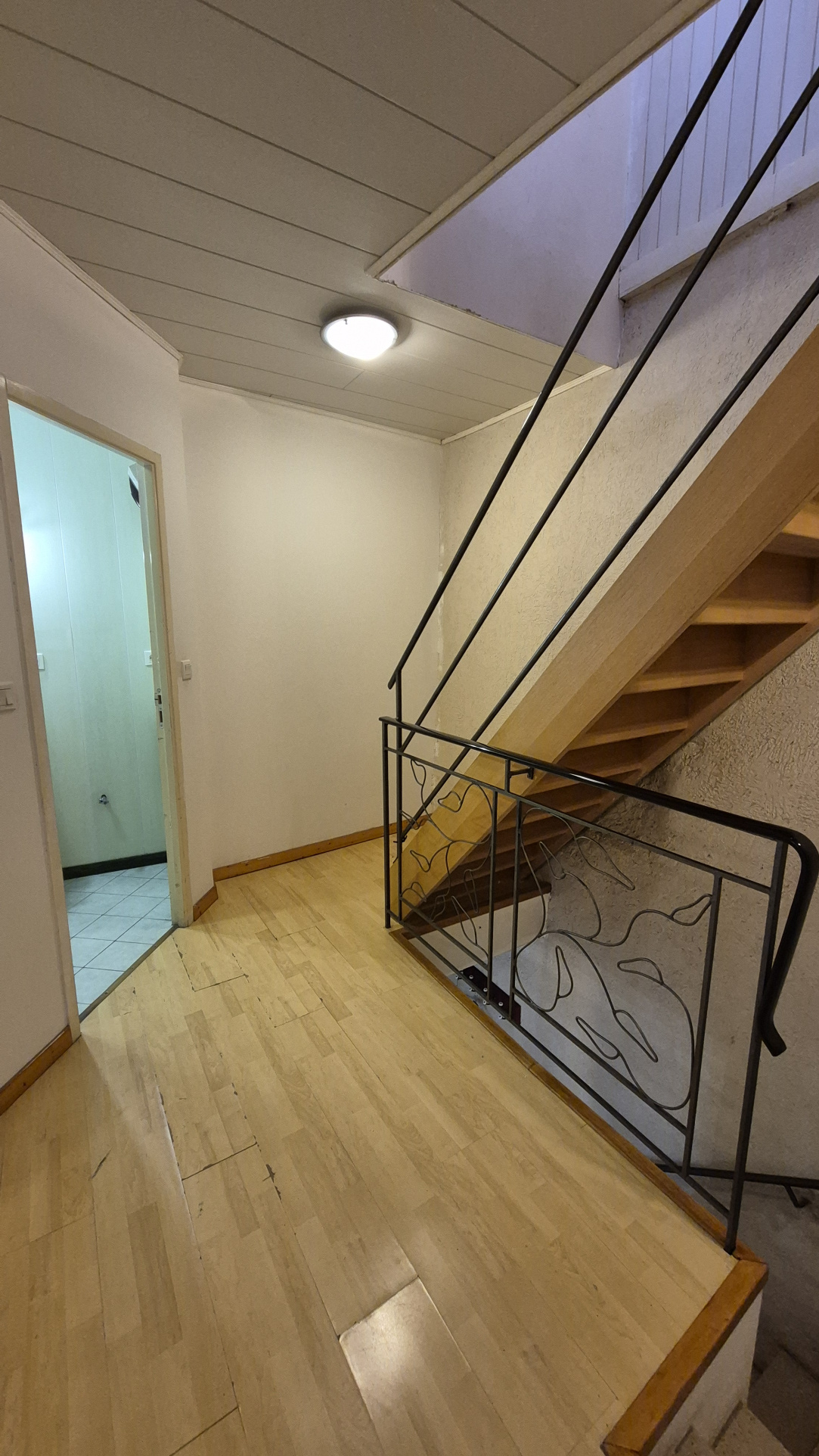 Une cuisine ouverte, séjour/salle à manger, wc au premier étage.