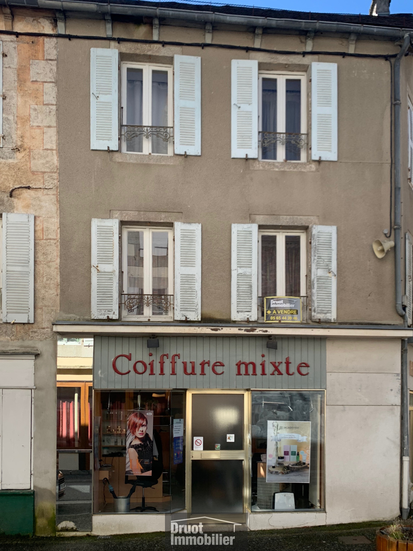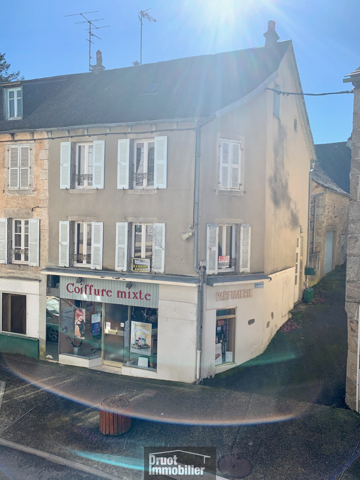 Nous vous proposons ce petit immeuble situé en centre ville et composé d’un commerce en rez de chaussée et d’un appartement de type 4 duplex. Quelques travaux de rafraichissement à prévoir. Le gros oeuvre en pierres est sain et en bon état ainsi que la couverture. Le bien est relié au tout à l’égout.