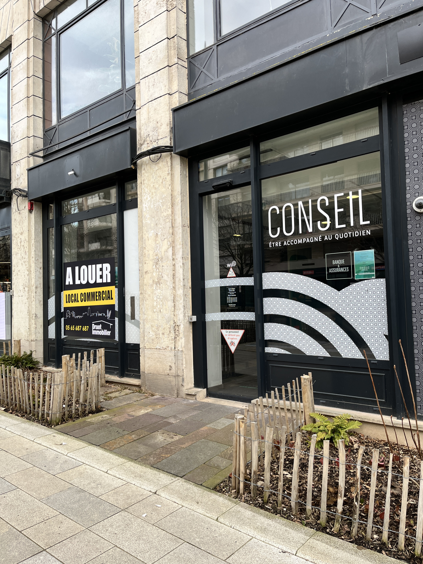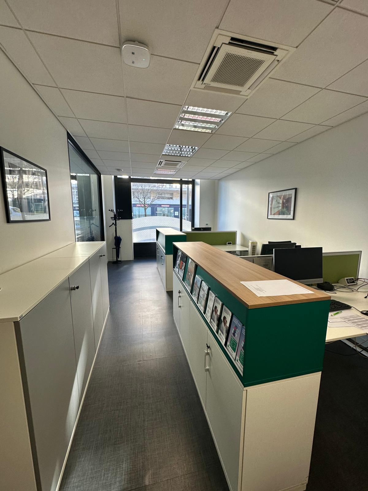 De plain-pied, ce local est déjà aménagé pour accueillir une banque grâce à ses équipements adaptés : un vaste hall d’accueil, des bureaux cloisonnés, et une grande salle pouvant être aménagée en open space. Il dispose également d’espaces de stockage, d’une salle polyvalente pour un espace communautaire, ainsi que de vestiaires et de sanitaires.
