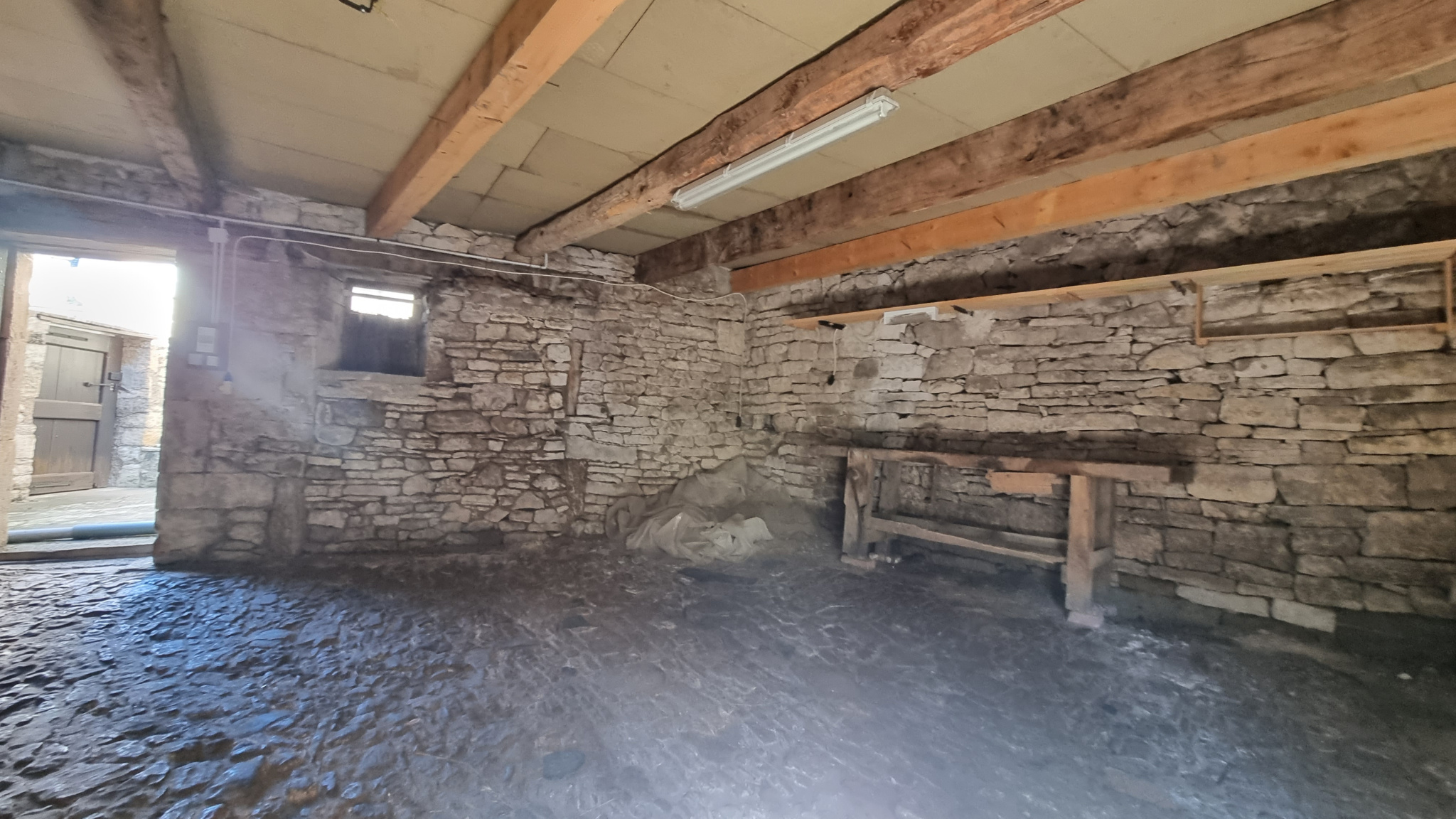 La grange de 55m2, se compose d’un garage cave en rdc et d’un espace plateau aménageable en partie haute, Toiture en bon état refaite. Parquet refait également.