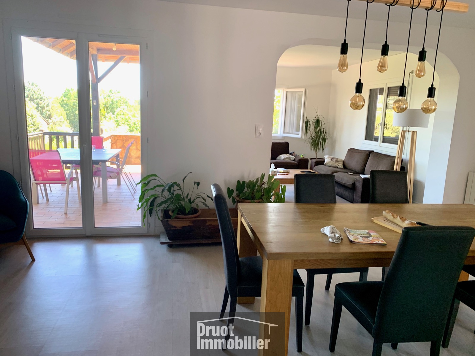 Druelle, maison T6 de 150m2 rénovée sur 1000m2 de terrain arboré. Séjour de 45m2, cuisine de 13m2, 5 chambres, 2 salles de bains, double garage, cave, atelier.