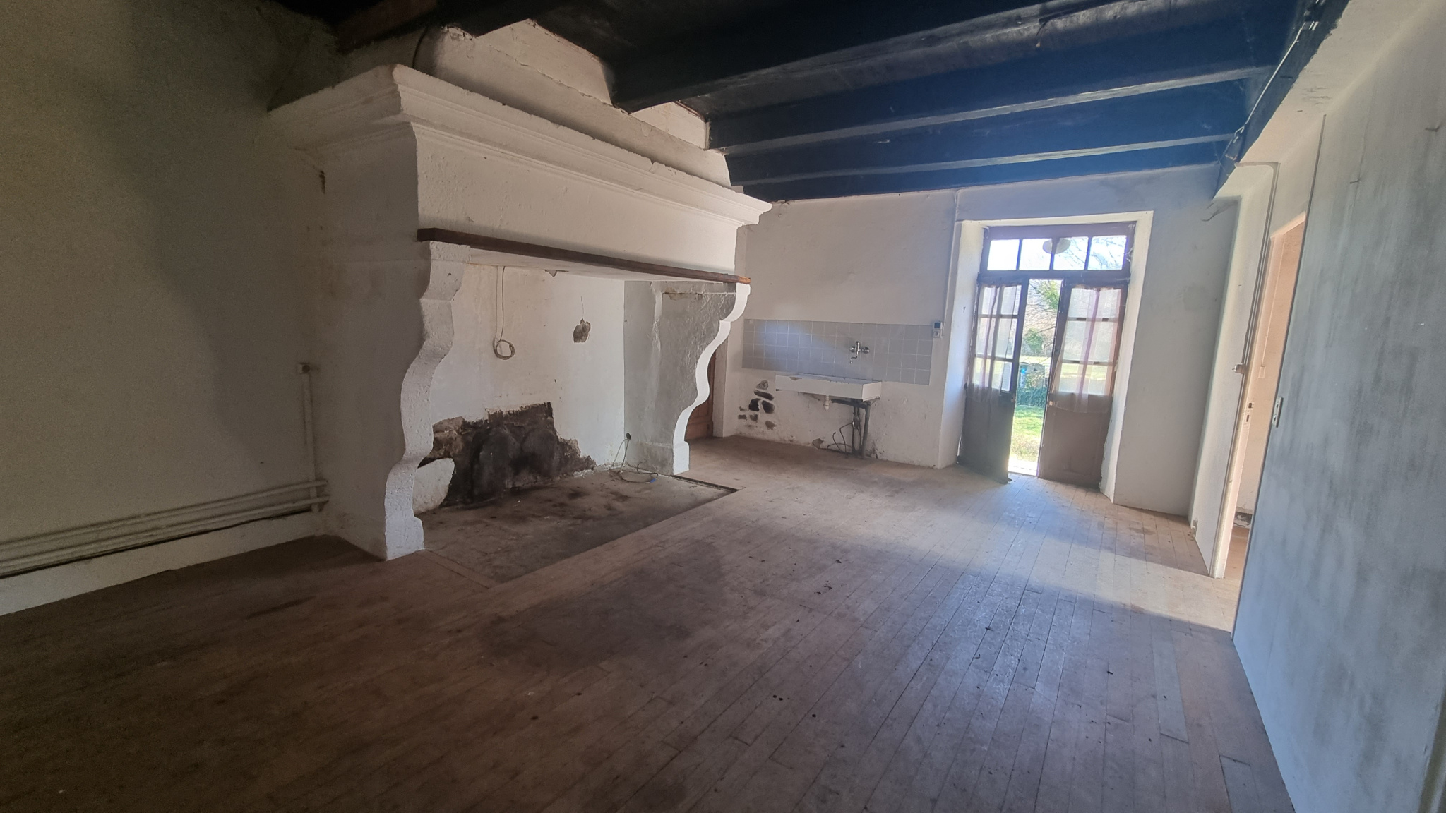 L’ensemble est composé d’une GRANGE en bon état de 130 m2 environ, d’une MAISON d’habitation de 103.95m2 avec son escalier ‘à vis’ et de DEPENDANCES. Terrain plat de 3382m2.